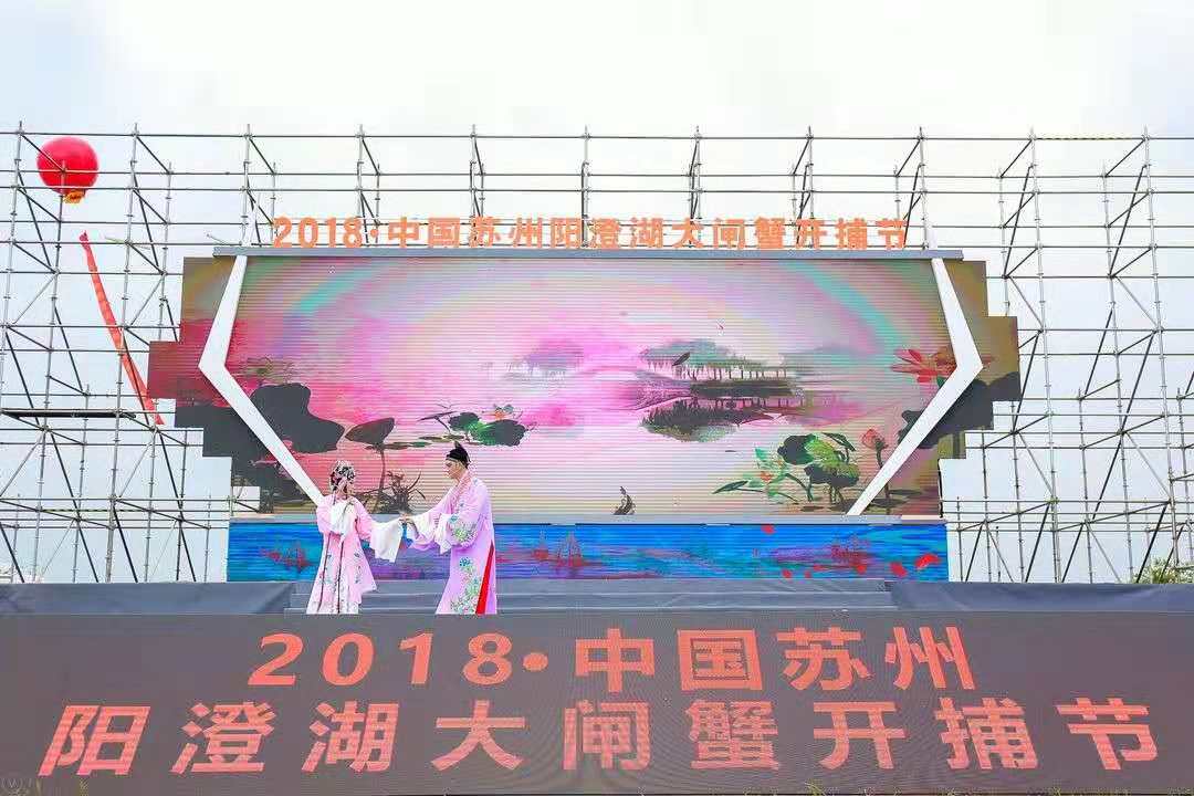 中国苏州阳澄湖大闸蟹开捕节当天,活动现场人山人海,造型呈现现代化、国际范的大型舞台上,一个个精彩纷呈的节目吸引着现场观众的眼球,虽然活动当天并没有艳阳高照,但是现场观众火一般的热情同样将本次开捕节推向了高潮!